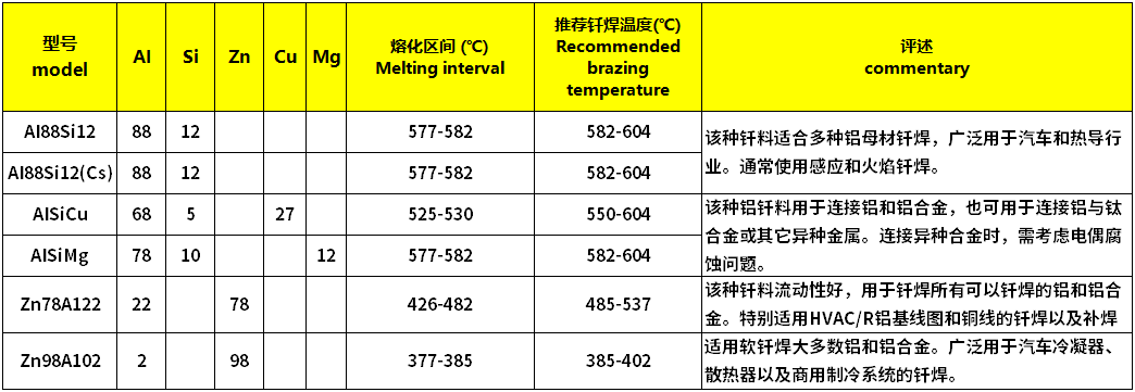 適用軟釬焊大多數鋁和鋁合金。廣泛用于汽車(chē)冷凝器、散熱器以及商用制冷系統的釬焊。